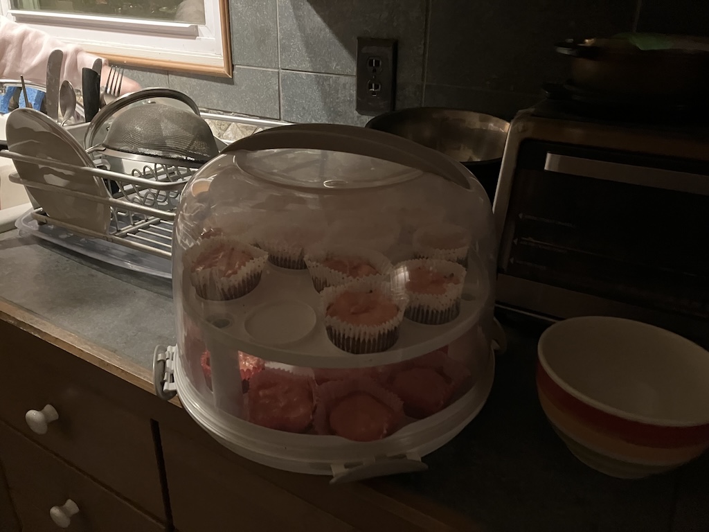At my house (Overhill Dr.) Julie (to the left of the fireplace) brought Valentine’s Day cupcakes. And they were REALLY good.