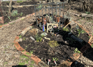 Joseph showed me how he’s refurbishing one special place in his forest garden (front of 2601 DeKist St.) (from both north and south).