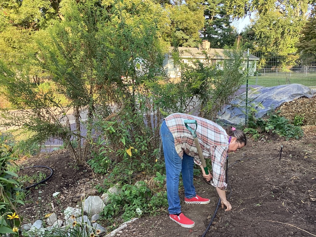 Here it is, behind Marita, as she works on the new garden (for cabbages).