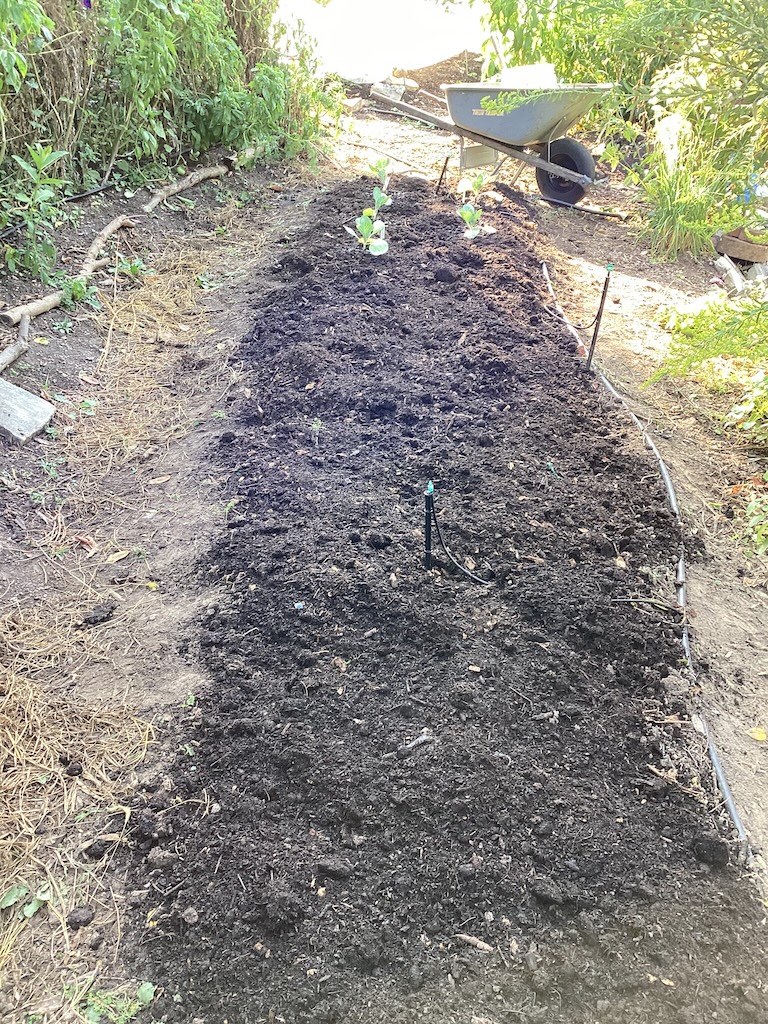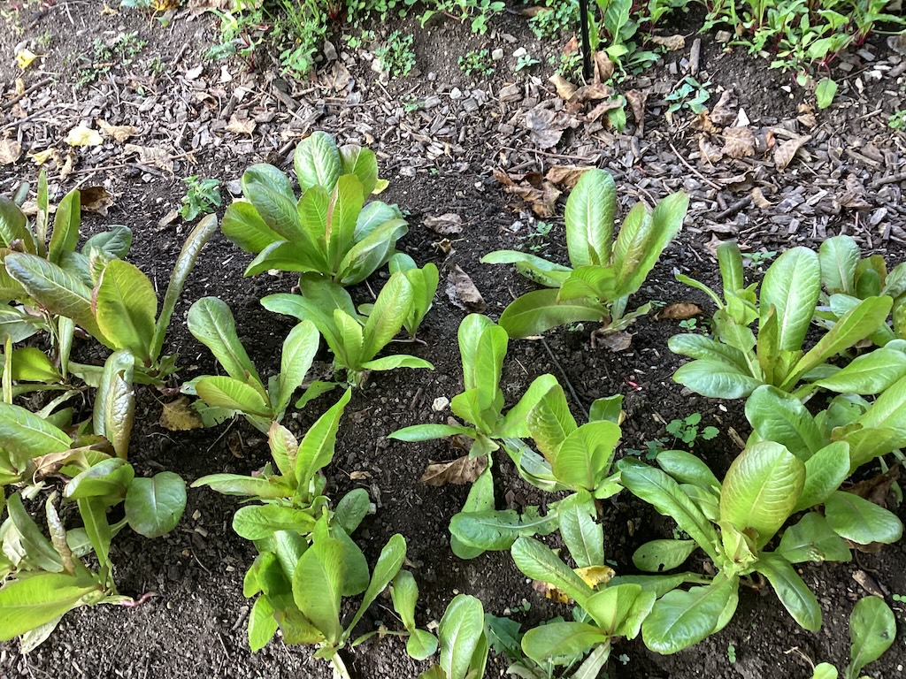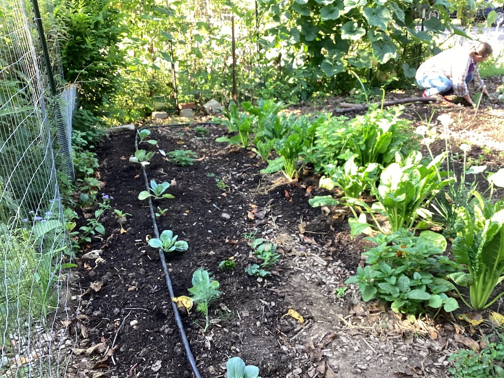 Meanwhile, here’s the new cabbage bed, plus another one planted recently. Notice there’s lots of chard on the right.
