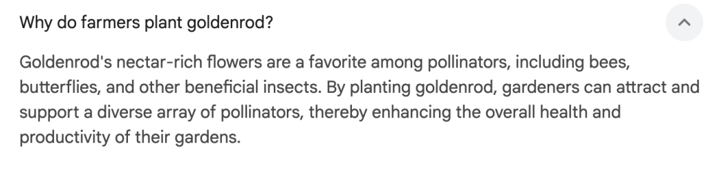 It turns out, NO. This plant is goldenrod. And Mere (on the right) let us know why it’s good to have in garden.