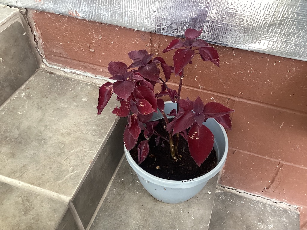 I’ve already taken some of the Coleus neighbor Devin gave us this summer from the garden to inside the small greenhouse, in a pot. It sprang back almost overnight.